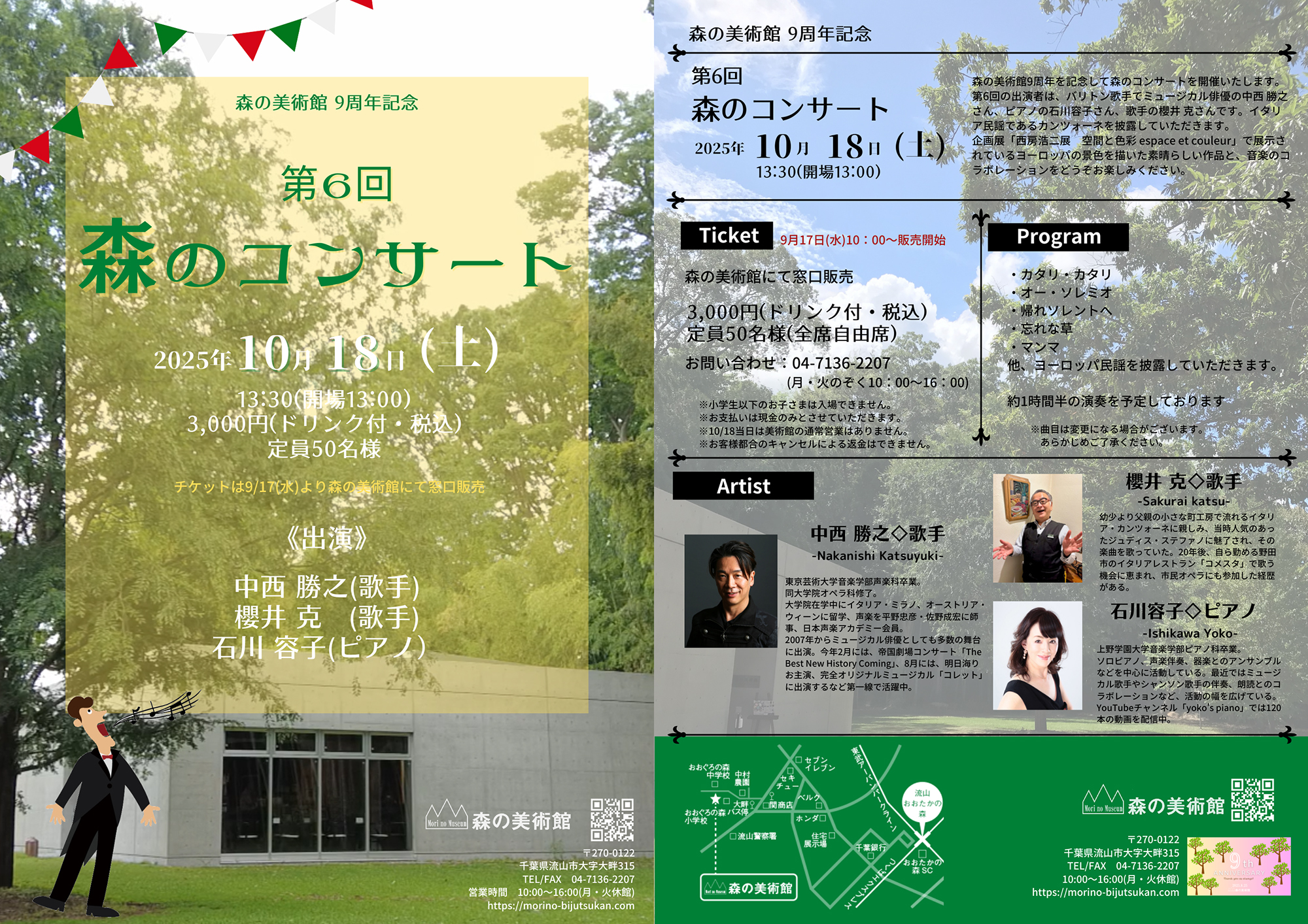 きたる10/18(土)に第6回森のコンサートを開催いたします。